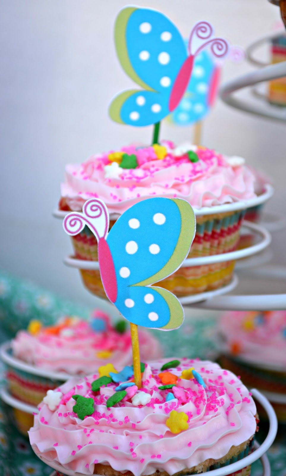 I made this t-shirt using the print and cut feature on my Cameo for my daughter to wear. I designed the shirt and then printed it on transfer paper right in my photo printer. My daughter loves telling everyone she's 4 now! The invitation and cupcake toppers were also made using the print and cut feature on my Cameo since crafty time is so hard to squeeze in with working full time. The party hat and cupcake stand were made with traditional paper piecings. You can't have a birthday without cupcakes....and making them is the best part. My daughter and I made the cupcakes together and yes, I did let her lick the beaters just like my mom let me when I was little. What's more girly than pink and sprinkles, butterflies and unicorns?